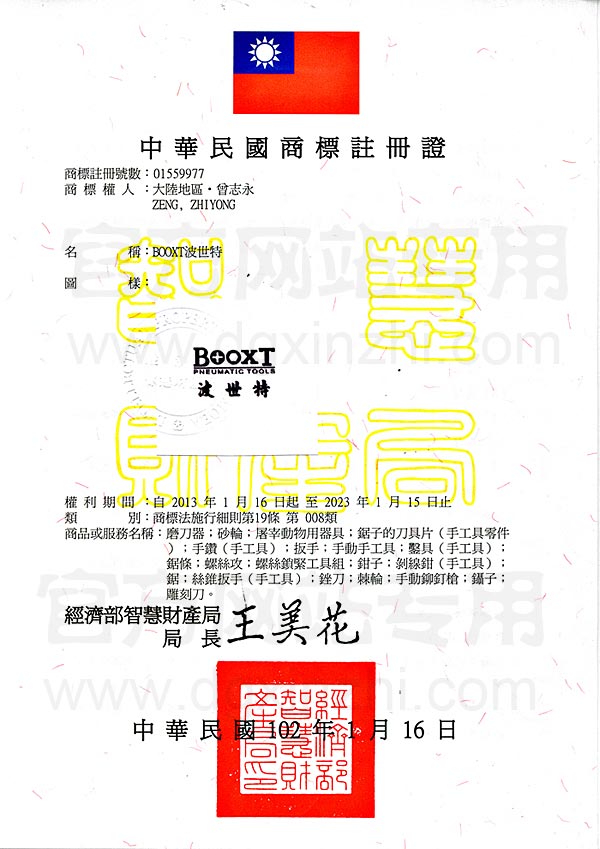 BOOXT臺(tái)灣注冊(cè)證第8類