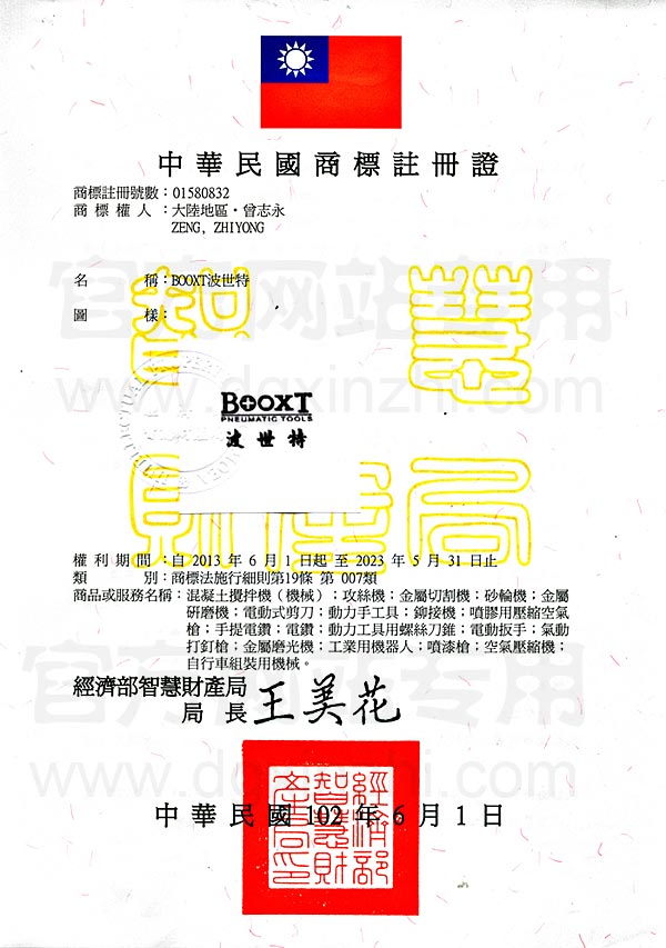 BOOXT臺(tái)灣注冊(cè)證第7類